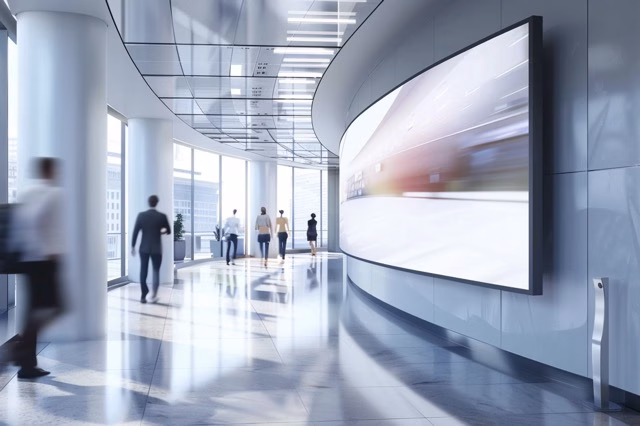 In places with a lot of group activity or foot traffic, curved displays can draw attention without becoming obstacles. Instead of blocking movement or making the space feel smaller, the gentle curve can direct sightlines, making wayfinding easier and supporting the overall design of the area.